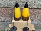 Sprzedam lampy sufitowe 2 szt. Klosze grube, kolorowe. Lampy na jedną żarówkę o grubym gwincie. Długość lampy 37 cm, średnica 15 cm, długość kabla 260 cm. Lampy bez uszkodzeń.
