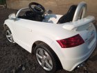 Zabawkowe elektryczne Audi TT RS. Autko jak nowe (używane sporadycznie). Pierwszy właściciel. Garażowane. Zero rys i rdzy (full plastik). Bezwypadkowy (prędkość do 2,5km/h). Pilot zdalnego sterowania i ładowarka w zestawie. Pełen LED. Opony brzytwa zero pęknięć. Autem steruje rodzic lub prowadzi je dziecko. Kierownica nie podgrzewana, ale miła w dotyku. Dodatkowo muzyka w kierownicy :)